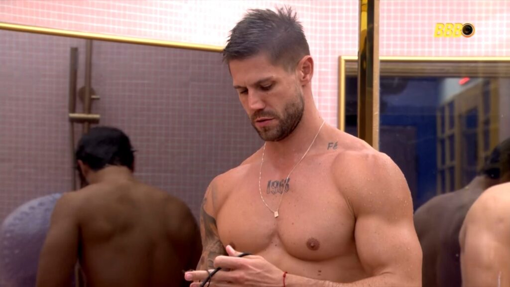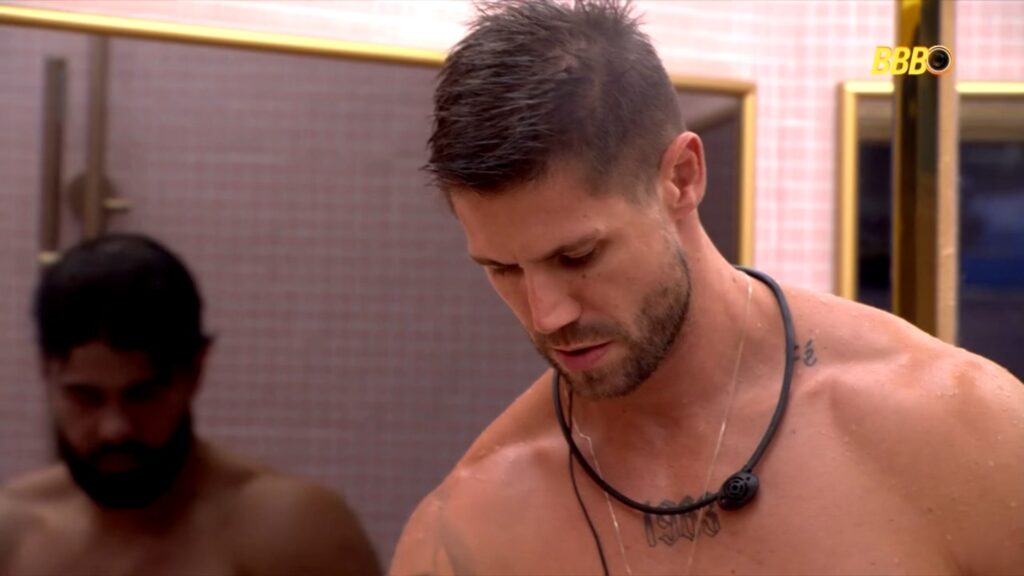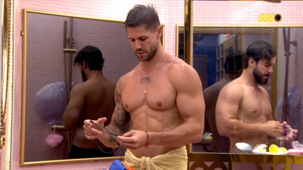 Jonas Sulzbach e Paulo Augusto Carvalhaes sem camisa no Big Brother Brasil 26