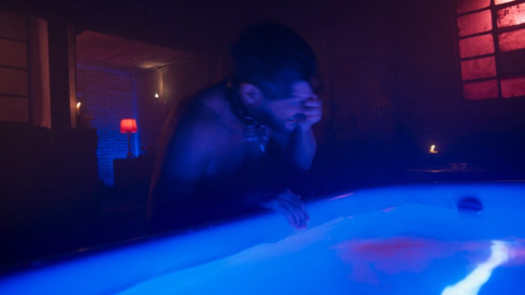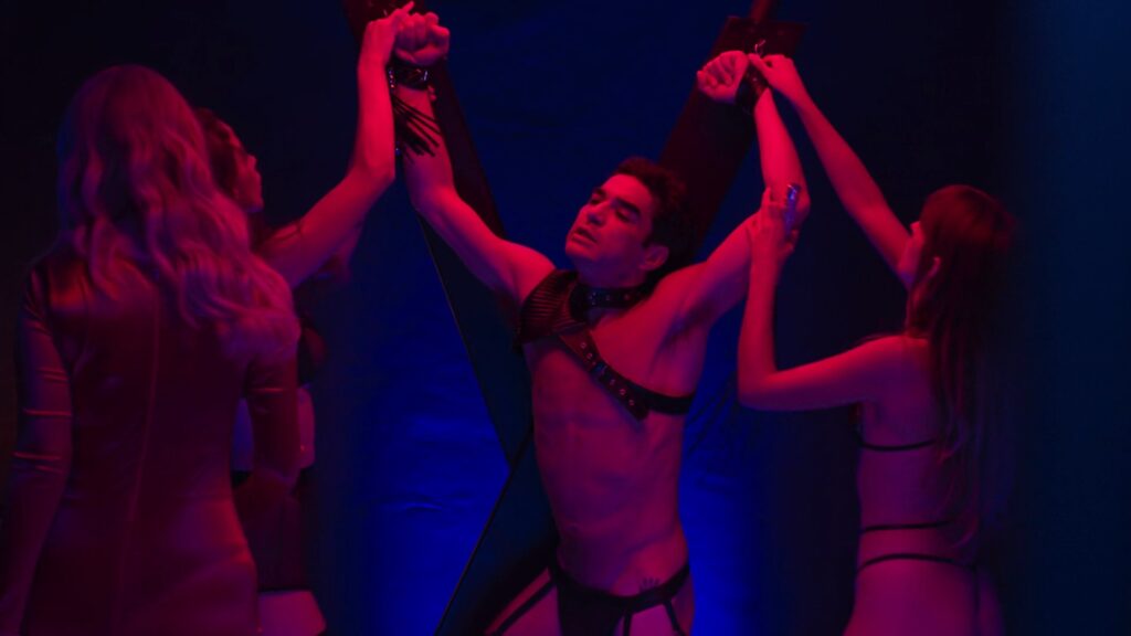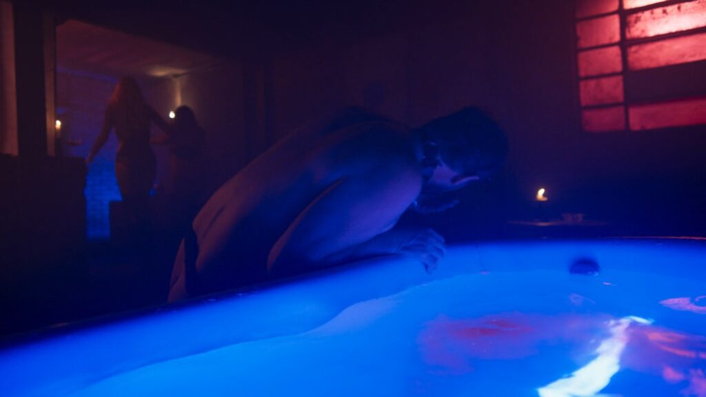 Marcelo Serrado, Caio Blat e Breno Ferreira sem camisa / nus em Beleza Fatal