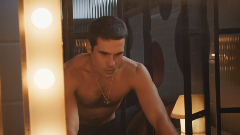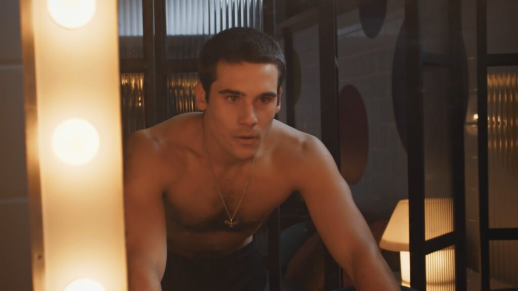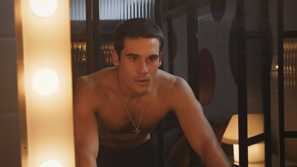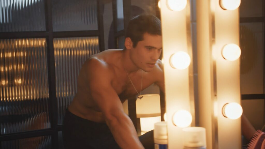 Nicolas Prattes sem camisa em Todas as Flores