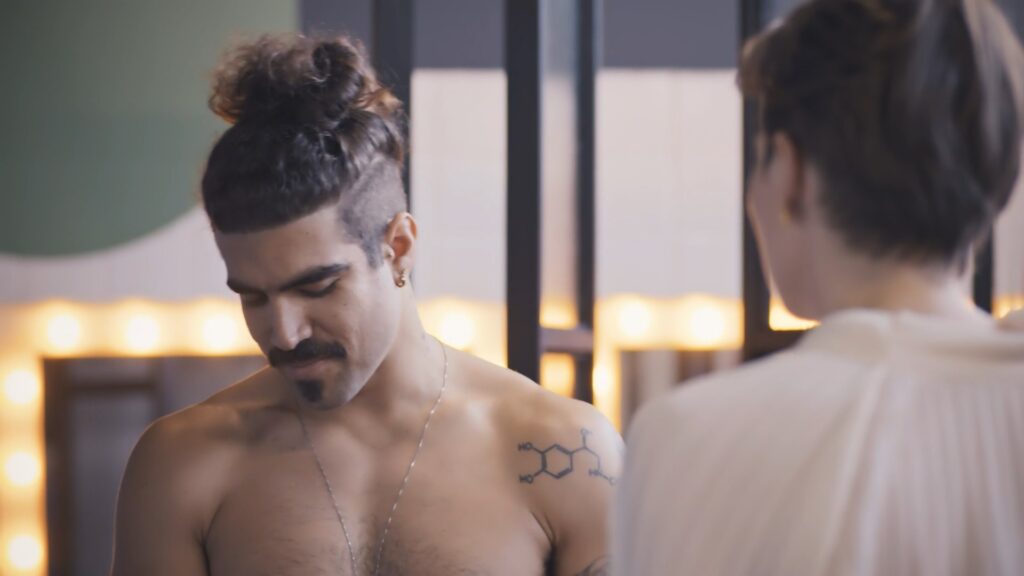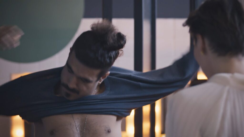 Caio Castro e Henrique Fraga sem camisa em Todas as Flores