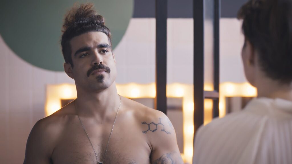 Caio Castro sem camisa em Todas as Flores
