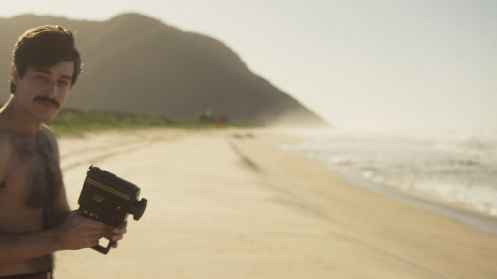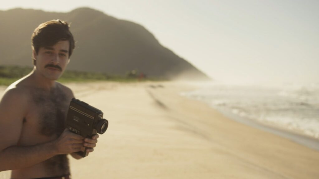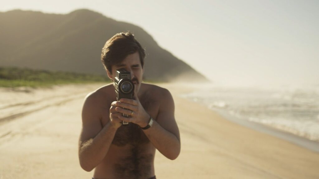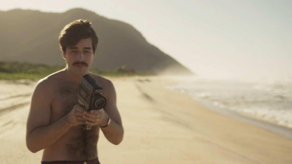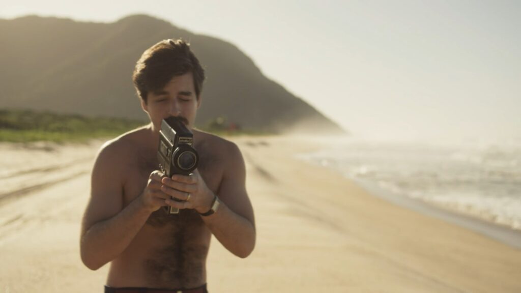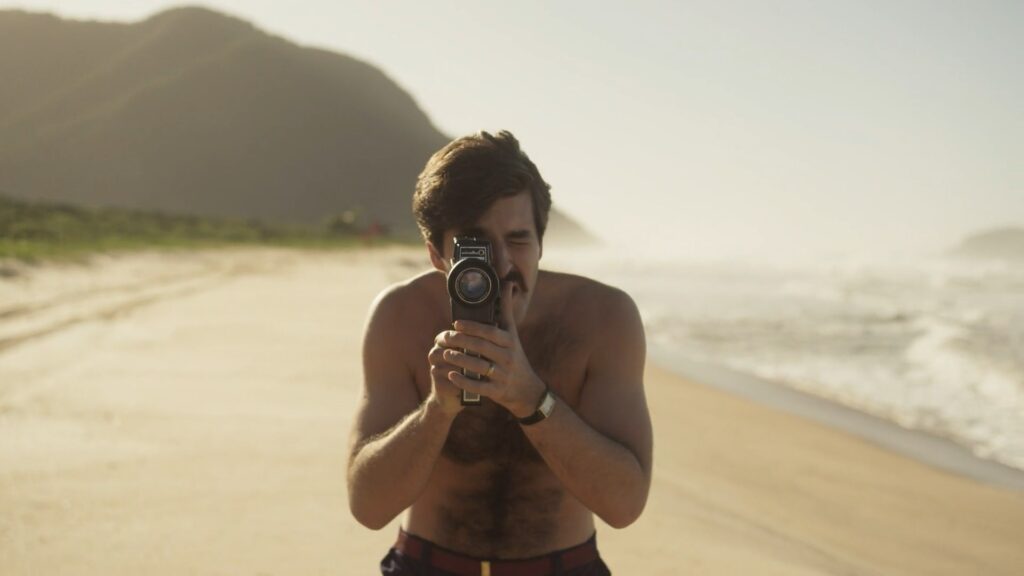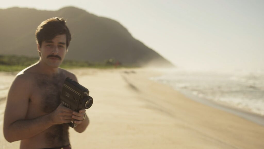 Deco Almeida sem camisa em Ângela Diniz: Assassinada e Condenada