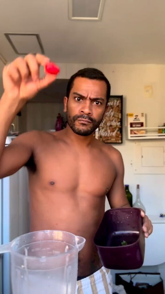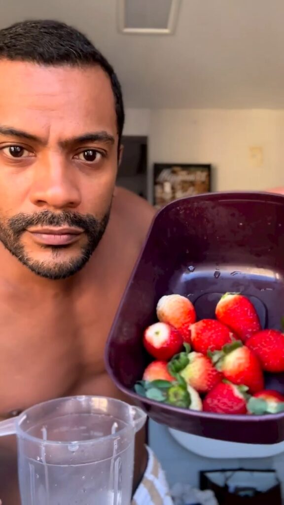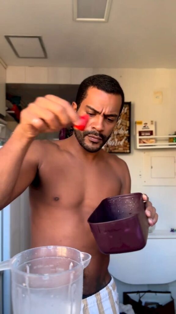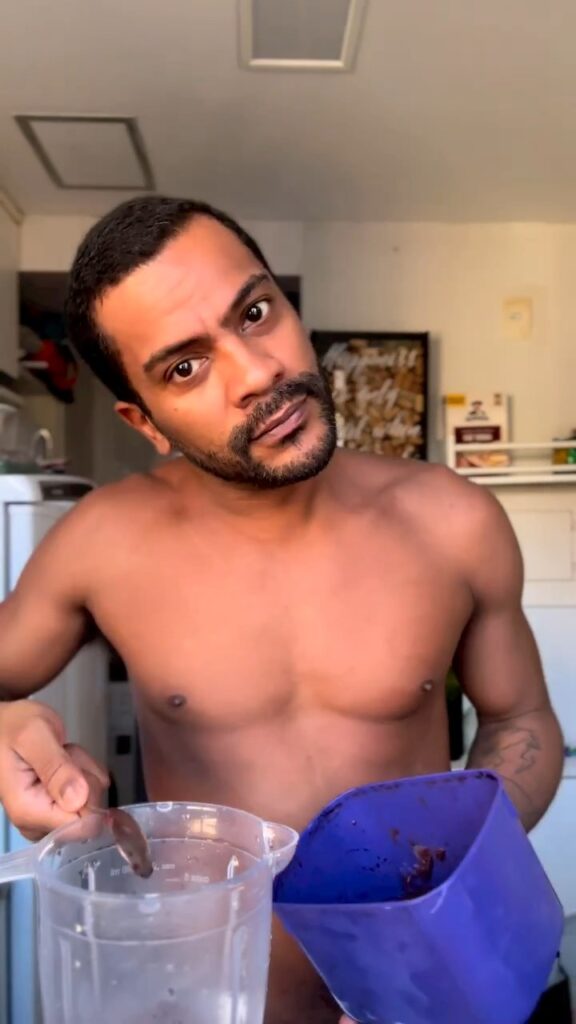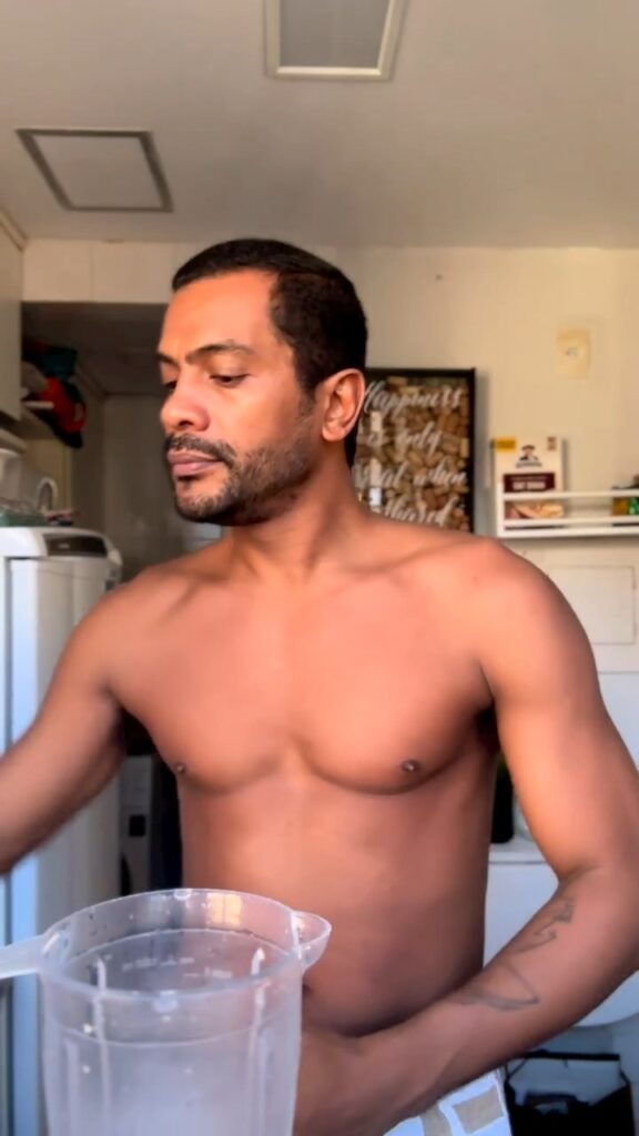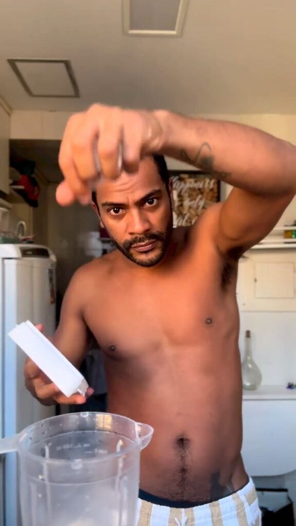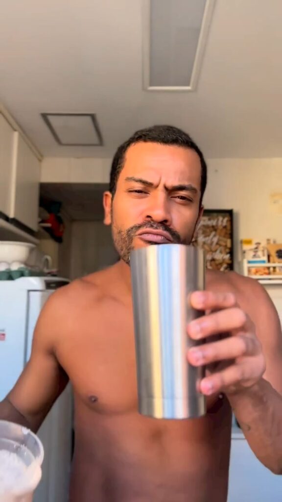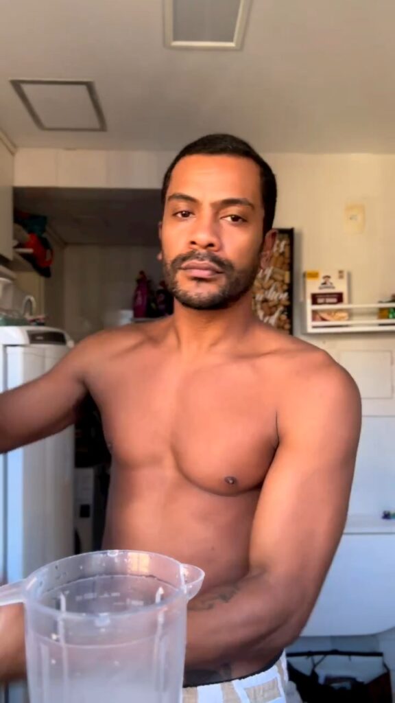 Samuel de Assis sem camisa em vídeo do Instagram